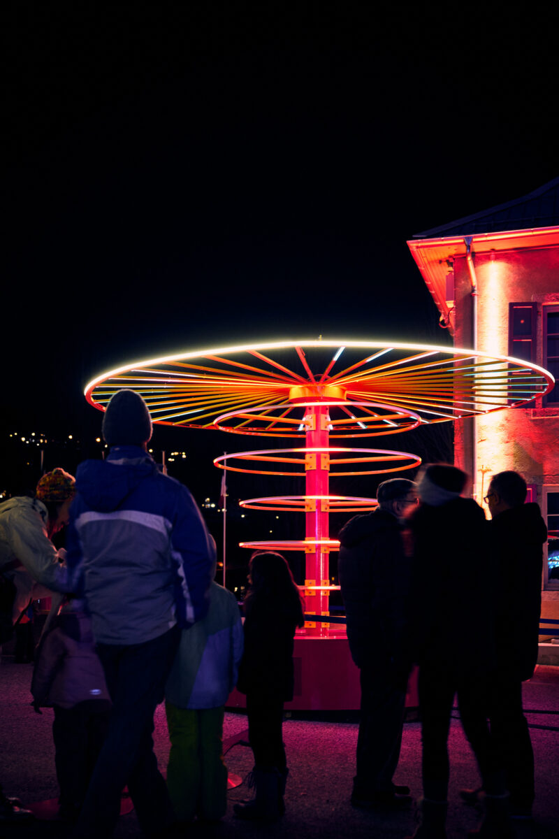 Last December, after we exhibit Toys in Space at the Fête des Lumières in Lyon, and at the Parcours aux Merveilles of la Halle aux Sucres in Dunkirk, we deployed Hélicoled in Saint-Gervais, for the Saint Gervais Mont Blanc Lights Festival.